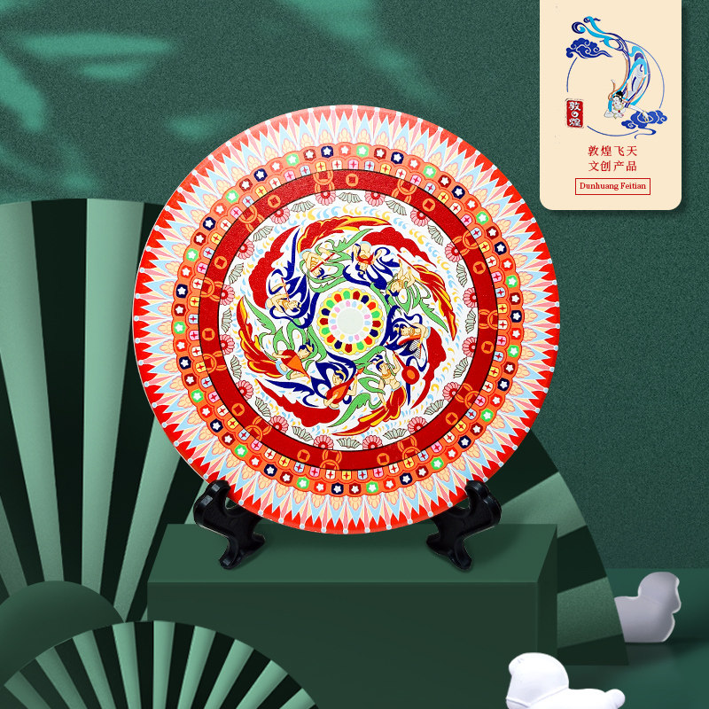 敦煌莫高窟文创产品茶杯垫飞天壁画藻井陶瓷彩创意摆件旅游纪念品热门设计联盟服务商